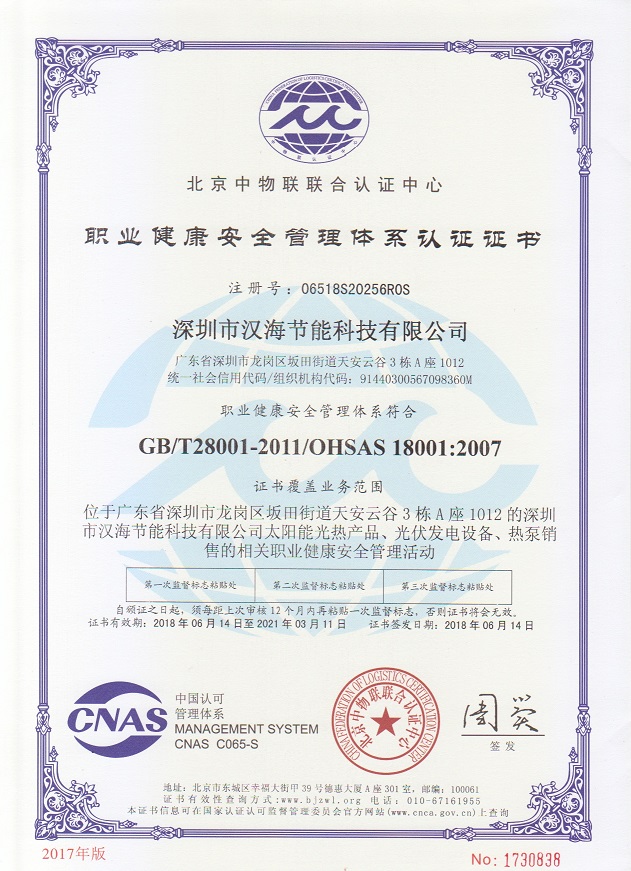 深圳市漢海節(jié)能科技有限公司成立于2011年,注冊(cè)資金6000萬元,總部設(shè)在深圳,是一家集設(shè)計(jì)、研發(fā)、施工于一體的專業(yè)化從事太陽能中央熱水工程、熱泵中央熱水工程、中央空調(diào)、光伏發(fā)電、水處理等新能源及節(jié)能環(huán)保行業(yè)的綜合服務(wù)商和工程商。在將近10年的發(fā)展歷程中,始終走在行業(yè)發(fā)展的前沿,是專業(yè)從事太陽能光熱、光伏,空氣源、太陽能熱水工程、水源熱泵,中央空調(diào),水處理產(chǎn)品的設(shè)計(jì)、安裝、售后服務(wù)為一體的高新技術(shù)企業(yè);是專業(yè)提供太陽能中央熱水工程、熱泵中央熱水工程、中央空調(diào)工程、光伏發(fā)電工程、水處理工程、太陽能熱水工程等全面解決方案的供應(yīng)商和工程商,產(chǎn)品涵蓋太陽能集熱器、空氣源熱泵、水源熱泵、中央空調(diào)、光伏組件、太陽能熱水工程等,是新能源的倡導(dǎo)者和推動(dòng)者。公司成立以來,始終秉承“誠(chéng)信、責(zé)任、專業(yè)、高效”的服務(wù)宗旨,以市場(chǎng)需求為導(dǎo)向,以為客戶創(chuàng)造價(jià)值為己任的精神,不斷開拓創(chuàng)新,通過多年的快速發(fā)展,公司綜合實(shí)力躍居行業(yè)前列。漢海擁有一支經(jīng)驗(yàn)豐富、善打硬仗的專業(yè)高效團(tuán)隊(duì);擁有一批專業(yè)的高級(jí)工程師、中級(jí)工程師、二級(jí)建造師、造價(jià)工程師、電氣設(shè)計(jì)師、給排水設(shè)計(jì)師;擁有一批機(jī)電、安防、水、電等專業(yè)技術(shù)施工和售后人員,配備先進(jìn)齊全,實(shí)力雄厚,技術(shù)領(lǐng)先。漢海以質(zhì)量樹信譽(yù)、以工藝立標(biāo)桿、以管理創(chuàng)效益、以服務(wù)得人心,工藝水平在業(yè)界獨(dú)樹一幟,成為行業(yè)模仿的典范。漢海承建的機(jī)電工程(設(shè)計(jì)、施工)涉及星級(jí)酒店、賓館、高檔辦公樓、花園別墅、住宅小區(qū)、學(xué)校、水療中心、工廠等各種類型的工程,工程項(xiàng)目遍布全國(guó)各地。漢海將致力于成為全球信賴的新能源綜合服務(wù)商,為客戶提供新能源的全方位解決方案。未來,漢海將依托國(guó)家政策,積極開拓粵港澳大灣區(qū)、中國(guó)特色社會(huì)主義先行示范區(qū)市場(chǎng)及“一帶一路”沿線國(guó)際市場(chǎng),推動(dòng)新能源的新輝煌。